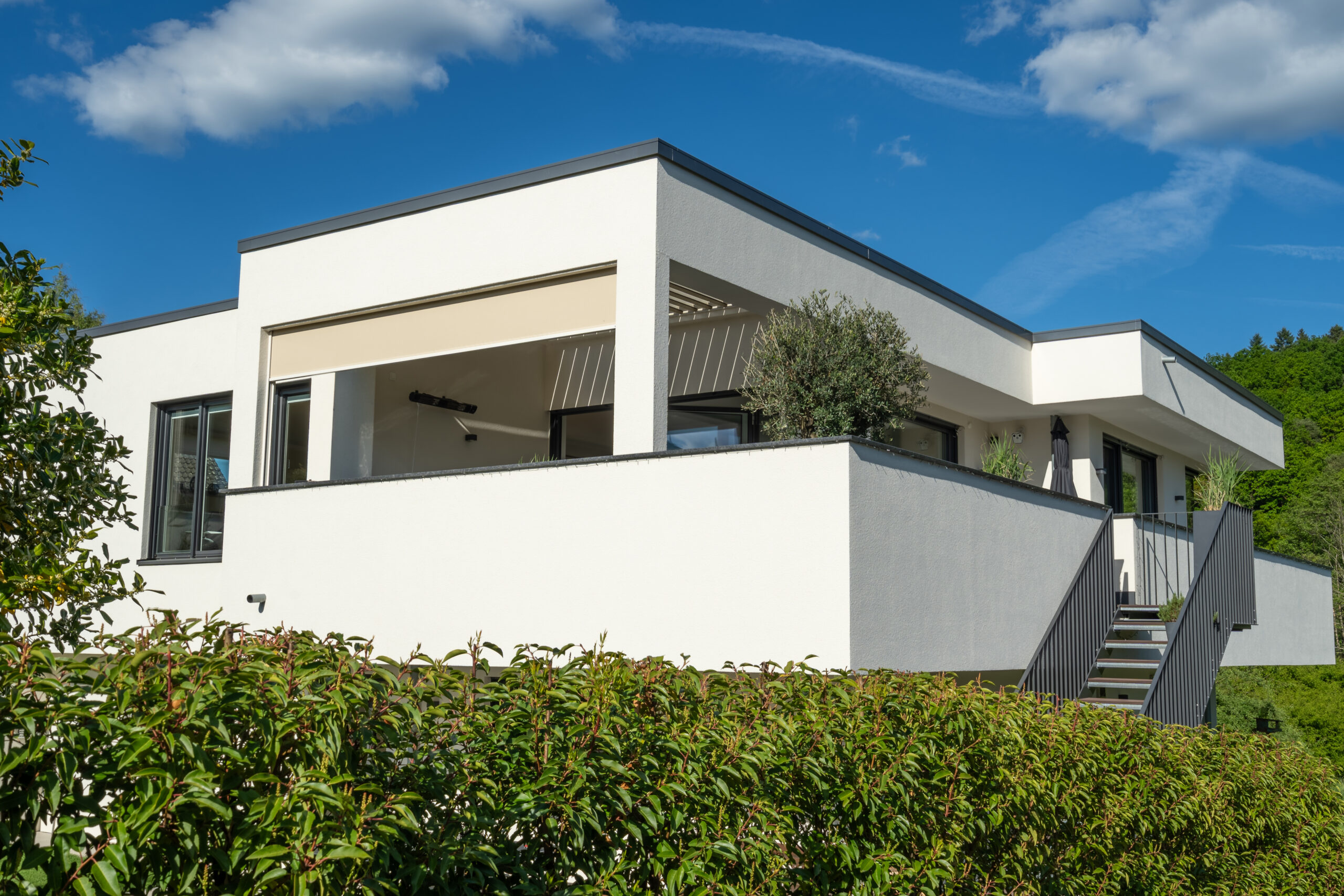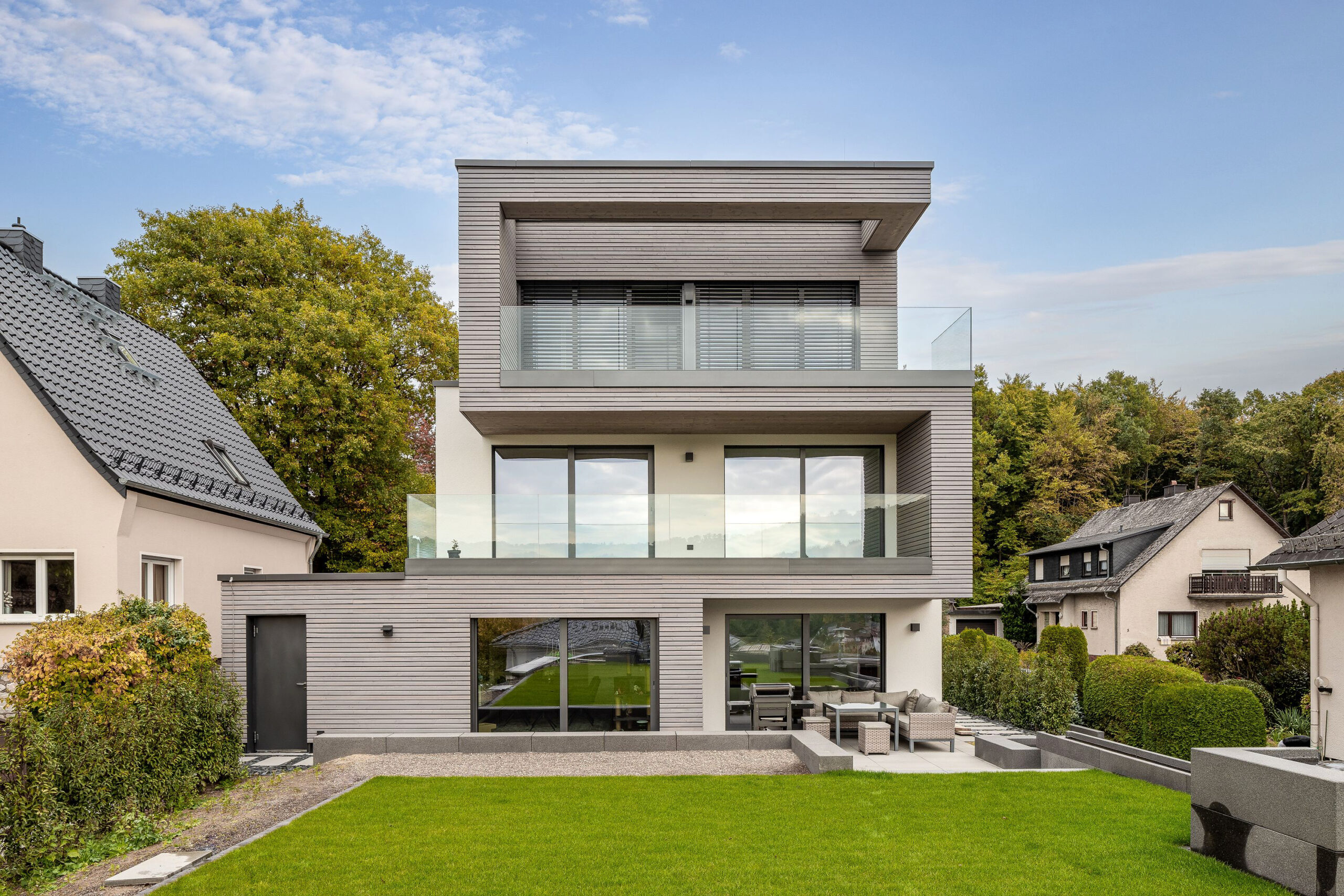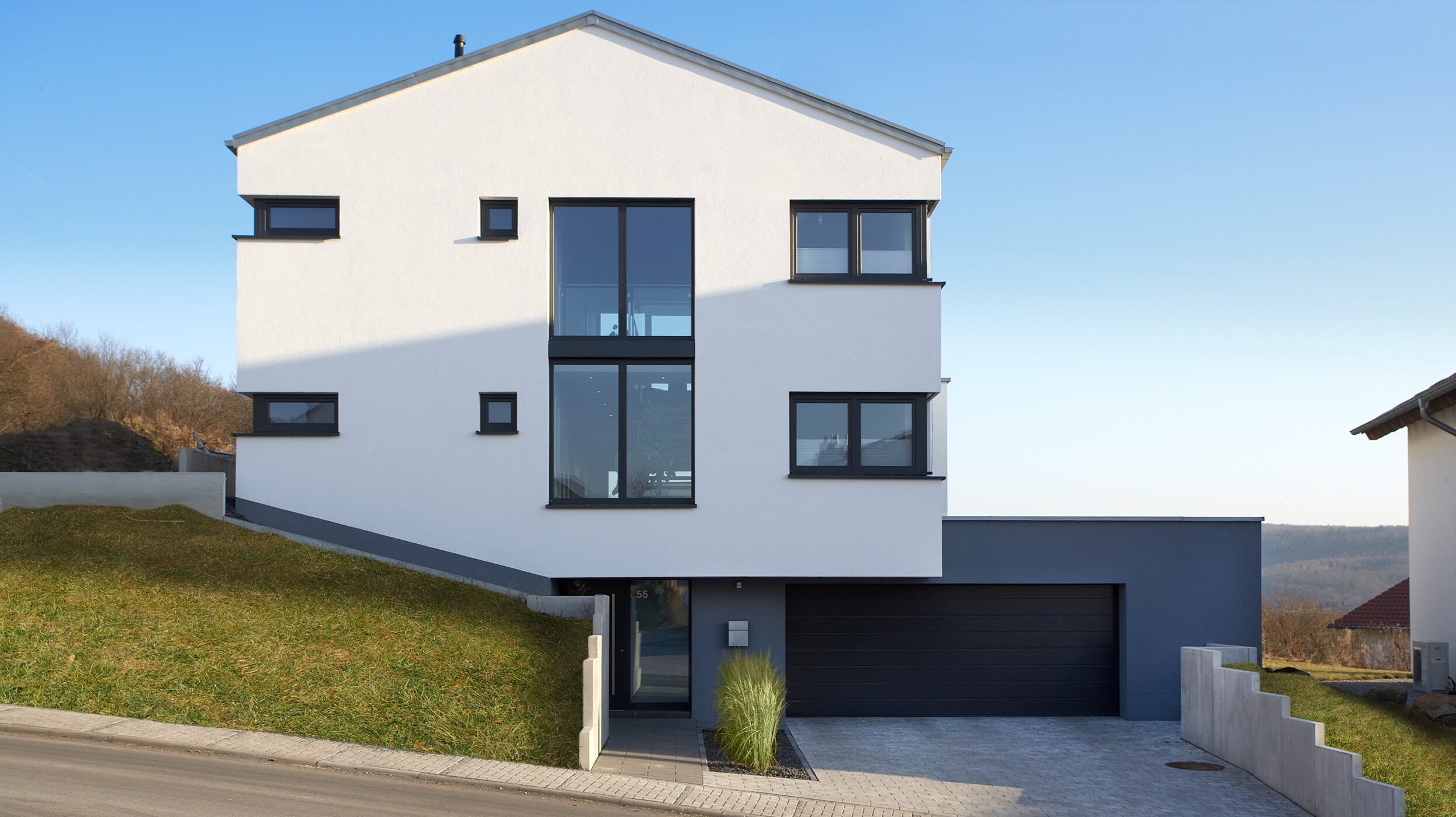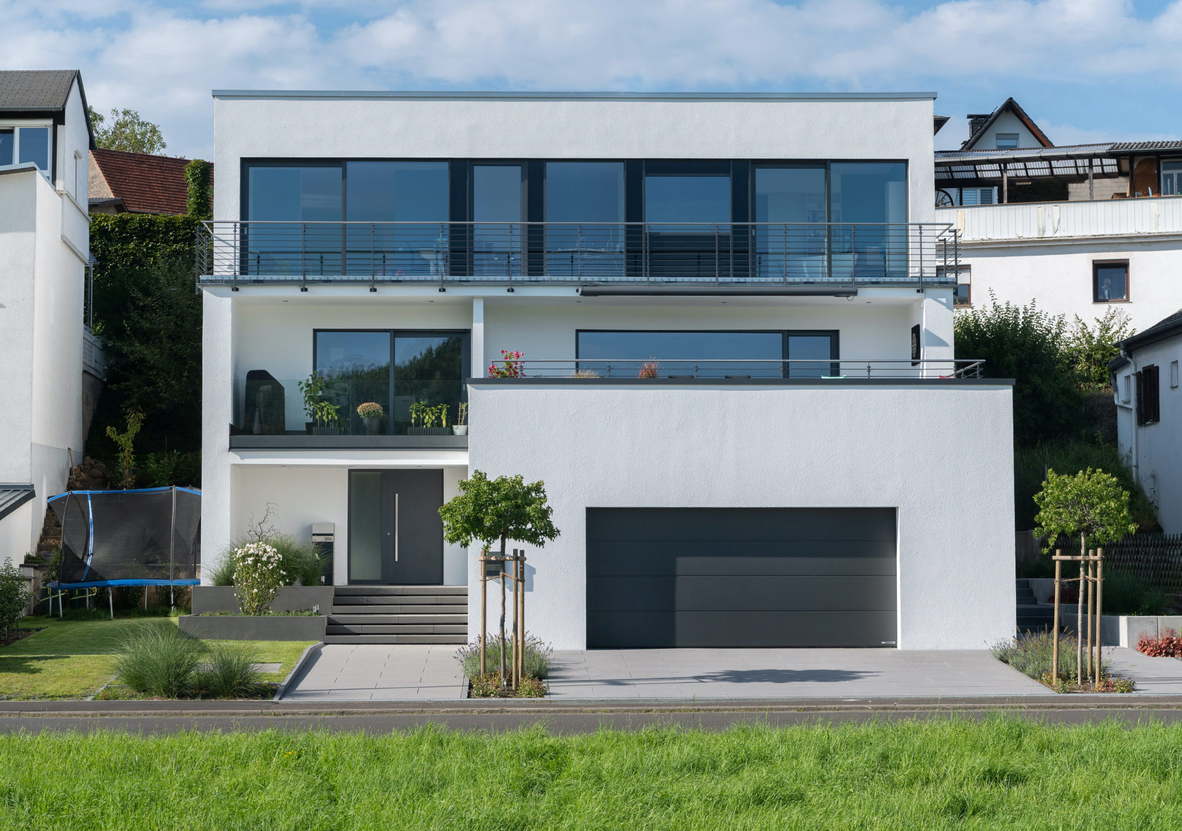 Neubau Einfamilienhaus in Hanglage Der Neubau eines Einfamilienhauses in Eppstein-Niederjosbach wurde in einer exponierten Hanglage mit einer Höhendifferenz von rund