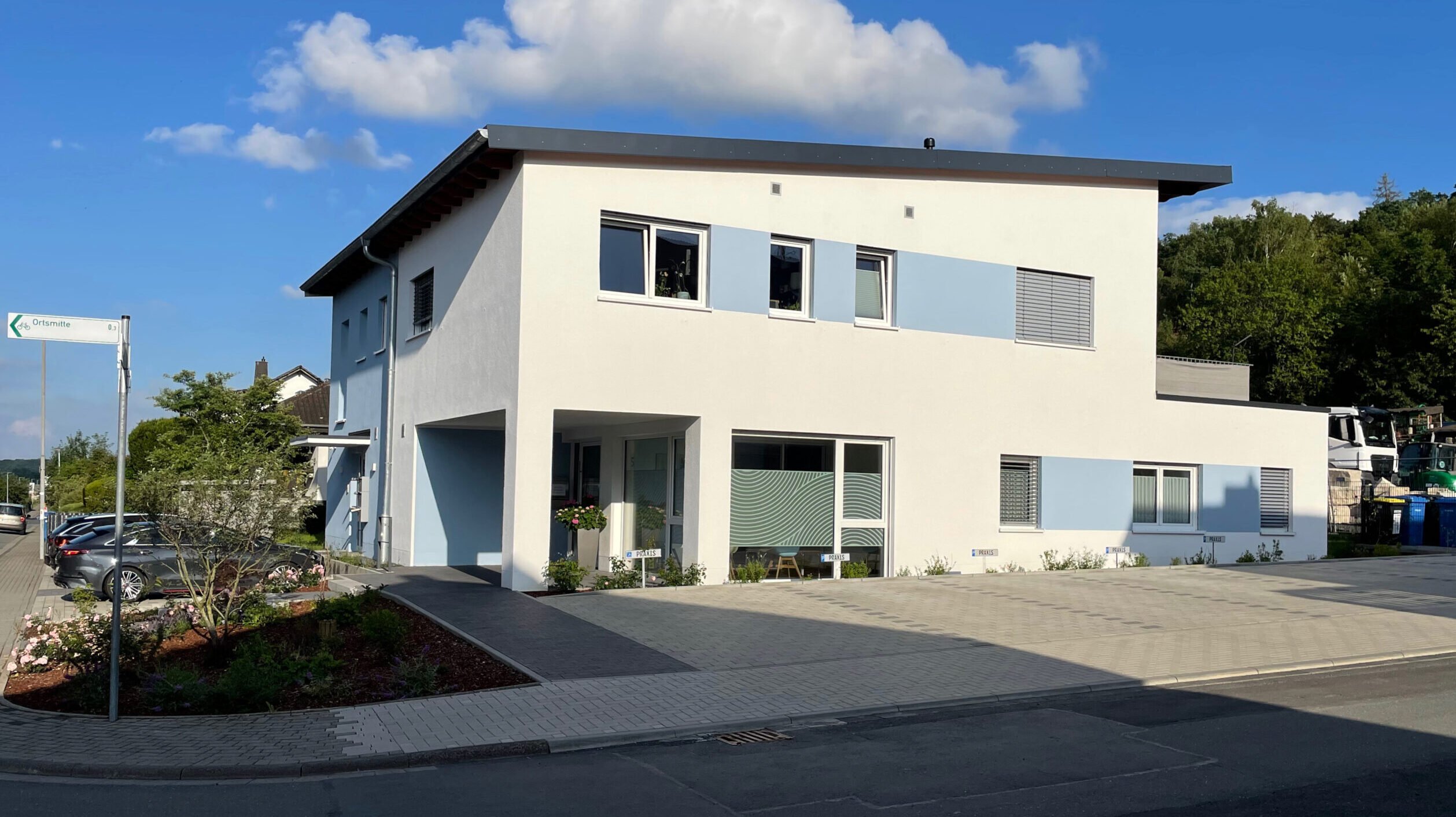 Neubau einer Zahnarztpraxis mit drei Wohneinheiten In Langgöns-Oberkleen entstand 2020 ein modernes, zweigeschossiges Gebäude, das funktionale Medizinarchitektur mit hochwertigem Wohnraum